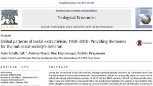 Anke Schaffartzik, Andreas Mayer, Nina Eisenmenger, Fridolin Krausmann, Global patterns of metal extractivism, 1950–2010: Providing the bones for the industrial society’s skeleton. Ecological Economics, Volume 122, February 2016, pp.101-110