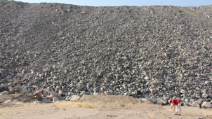The team was also joined for some days by Salvador, a young co-worker from LaRRI, keen to learn about uranium mining, radiation and it’s impacts. We still need to see how we can make use of his great communication skills. On Friday, the team visited the waste rock dump of Rössing which is not protected even by a fence. Waste rock is the portion of rocks with low uranium grade, it is therefore not processed but still contains uranium. The main risk, as Bruno explained, is the utilization of these rocks by the public or even by the mine for construction of roads, parking areas etc, as was done by Areva in France. The team also monitored the impact of the waste rock dump: radon gas in the air, transfer of radioactive minerals to the surrounding soil, elevated dose-rate when getting close to the radioactive rocks.