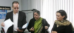 Three of the plaintiffs of the historic suit: Alberto Acosta, Vandana Shiva and EJOLT Collaborator, Ivonne Yanez from Oilwatc-Accion Ecologica