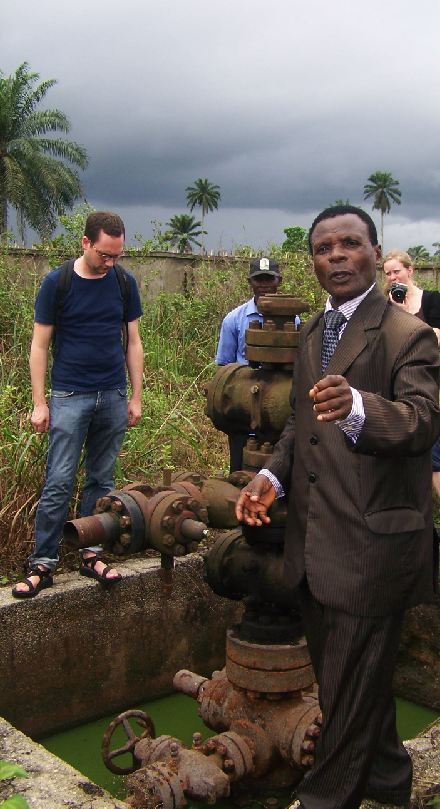 We visited the community of Ikot Ada Udo within a two hours’ drive from Port Harcourt. In the village hall, after a ceremony of welcome, one of the plaintiffs in The Netherlands court case, Friday Alfred Akpan, whose farm and fish ponds were damaged by oil spills, read and distributed the following text addressed to the village head, to the EJOLT visitors from many different countries, to Environmental Rights Action (ERA) of Nigeria, to Friends of the Earth from Norway, to the women of the Niger Delta and “all others too numerous to mention”.