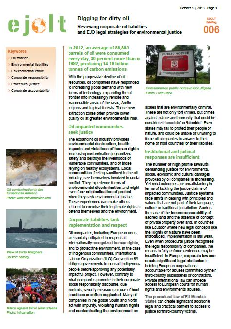 Read more in the 4 page EJOLT briefing on corporate oil liabilities.
