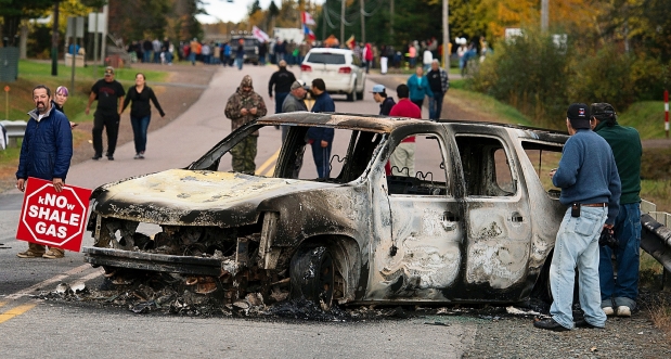 Canada is at the forefront of the international fracking boom, with only the United States leading in shale gas development. As is the case with countless environmental disputes, indigenous people are among the most heavily impacted populations. At the very heart of the fracking unrest are dysfunctional treaty relations and hasty exploitation of land. While fracking expands through the Canadian provinces, protests are also escalating. The Mi’kmaq people in New Brunswick have been peacefully protesting and protecting their land by holding a road blockade since the summer. They are demanding that national treaties (theoretically) including them in an equitable decision making process be upheld. Sadly, the peaceful protests turned into a spectacle of state police repression in mid-October, when a “small army of para-military-like authorities” from the RCMP snuck up on a line of tents where Mi’kmaq elders, children, and others had been camped in an attempt to protect their land. The invasion turned violent, with rubber bullets fired and police cars ablaze, harking back to stand-offs between the police and indigenous populations such as the Oka Crisis. What prompted the invasion of the peaceful protests, and, as the Mi’kmaq people are now asking—what now? It is unlikely that the Harper government will uphold treaties with indigenous people as demanded, while the Elsipogtog First Nation and other affected communities also seem unlikely to back down.