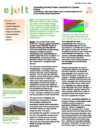 Read more in the 2 page EJOLT briefing on nuclear power in Eastern Europe (.pdf)
