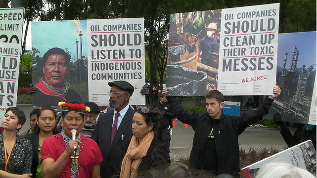 Several lawsuits were filed, according to Pablo Fajardo Mendoza, the acclaimed Ecuadorian lawyer representing 6,000 indigenous people, including the Secoya, and 25,000 farmers in Ecuador. In 2011, Ecuadorian courts ruled that Texaco/Chevron should pay clean-up costs and reparations amounting to 18 billion dollars (17 million euros) – later reduced to 9.5 billion dollars. But the oil giant filed a complaint with a US court, which ruled the Ecuadorian case against the company “fraudulent”. So far, Chevron has paid no reparations. “The justice system doesn’t protect people and nature, but protects the corporations that are cruising around in impunity,” Fajardo says during the Hague Talks discussion.