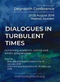 21-25 August 2018: The 6th International Degrowth Conference for ecological sustainability and social equity– Malmö, Sweden