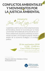 20 September 2018 Joan Martínez Alier: Conflictos ambientals y movimientos por la justicia ambiental – ITESO, Guadalajara, Mexico Tweet