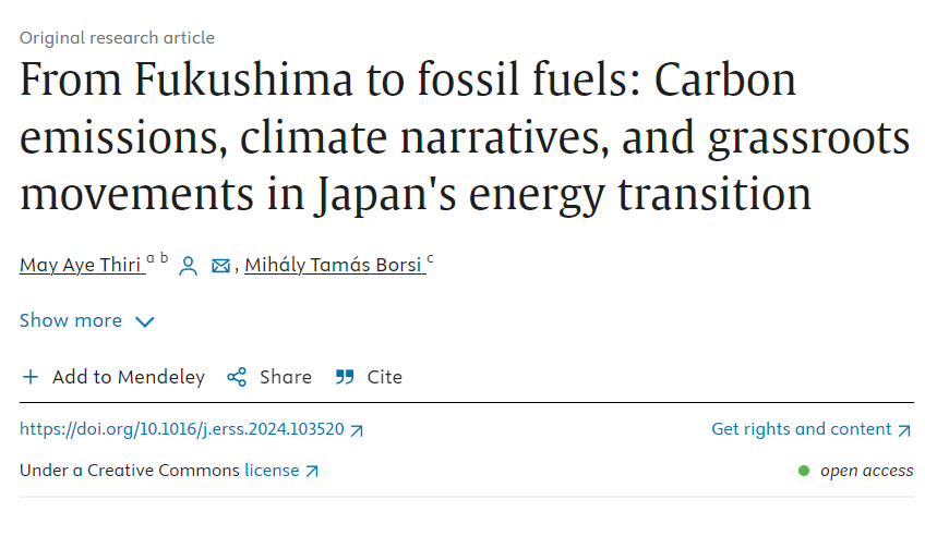 New: “From Fukushima to fossil fuels: Carbon emissions, climate narratives, and grassroots movements in Japan’s energy transition”