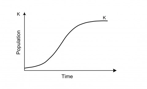 The population of any species (including humans) in a territory may increase in different patterns. It may increase exponentially, i.e. in geometric progression from 1, 2, 4, 8, 16, etc., sometimes referred to as Malthus’ law of population growth. Or, more realistically, it may increase according to Verhulst’s law (1838), representing a logistic curve. Population is represented in the vertical axis and time in the horizontal axis whereby maximum population ‘k’ is determined by the carrying capacity of a territory (Figure 1).