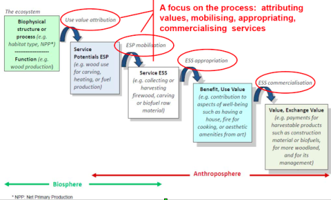In reality, however, it is human who define, mobilise, appropriate and commercialise ESS. Their first step is to recognise that an element of nature might be used for any purpose (Use Value Attribution & ESS Potential Identification). Different groups, agents, stakeholders and cultures have different world views and thus recognise different potential services.