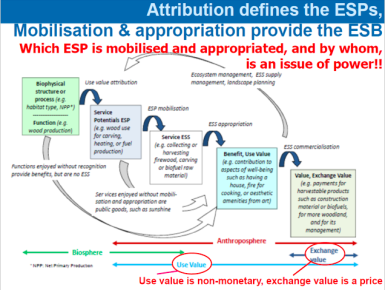Use value attribution is a matter of power, as is ESS appropriation; most environmental conflicts can be read as conflicts over use value attribution, ESS mobilisation and appropriation.